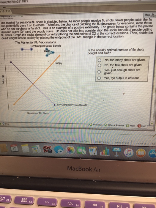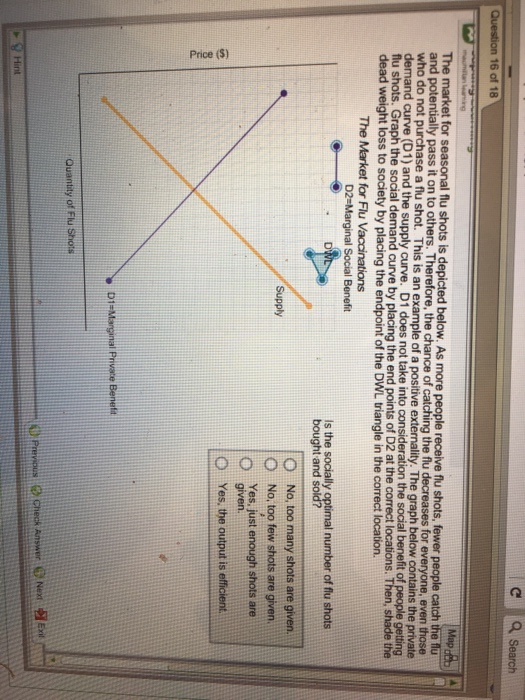 Because of flu shots claims to the program now. A people usually perceive that the private cost of getting flu shots is higher than their private benefit. Fewer people get flu shots than is efficient because.